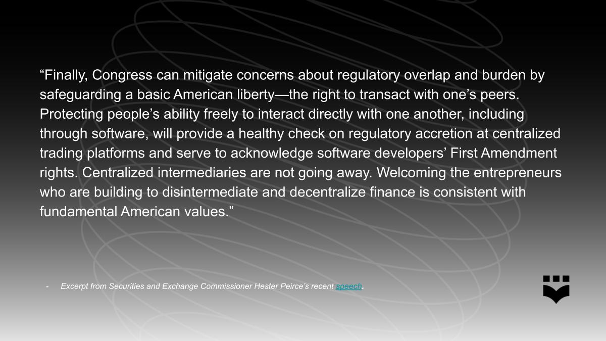 DeFi Education Fund applauds the resounding bipartisan group of policymakers who have acted to protect decentralized finance in the United States. Next, President Trump is expected to sign the legislation into law once it is presented to him, as expressed in the Statement of Administration Policy on the legislation.