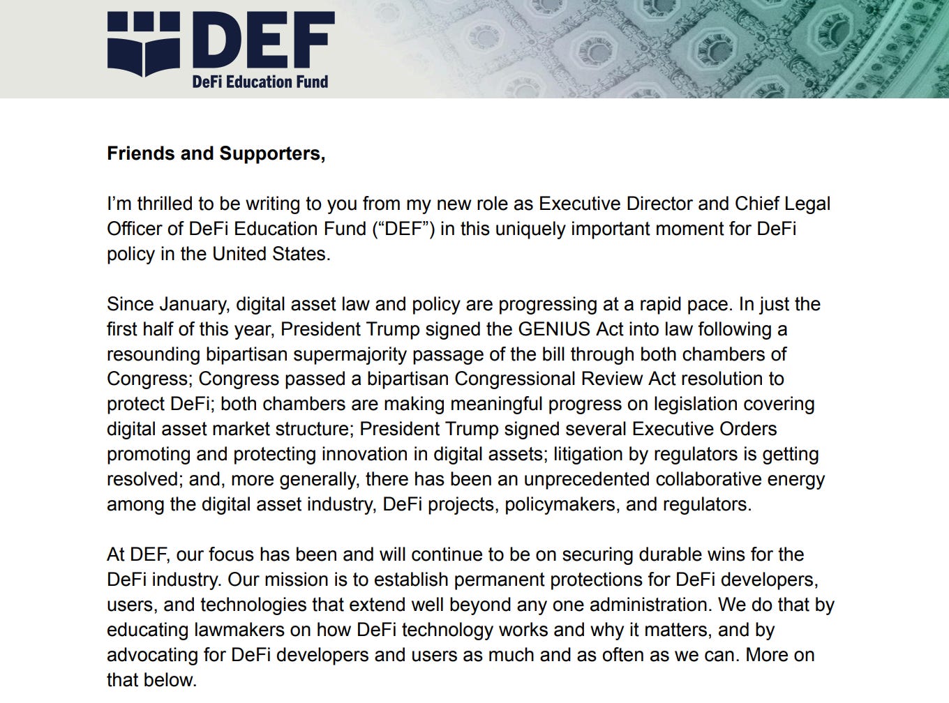 We also announced the launch of an affiliated 501(c)(3) entity, the DeFi Education Foundation, so donors can support our mission with the added benefit of charitable giving incentives.