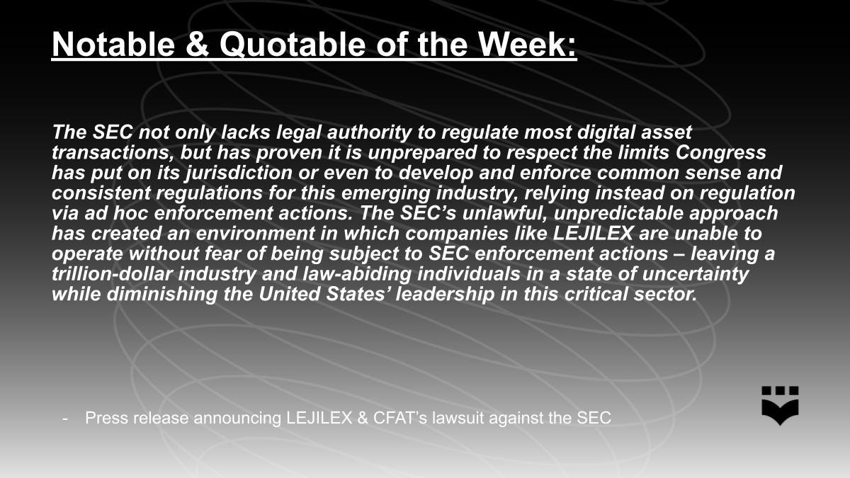 LEJILEX and the Crypto Freedom Alliance of Texas Sue the SEC