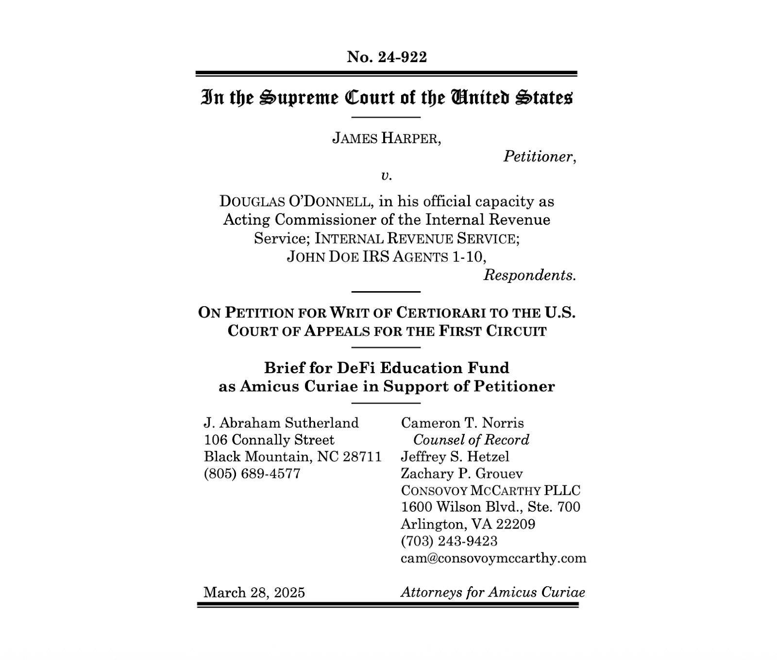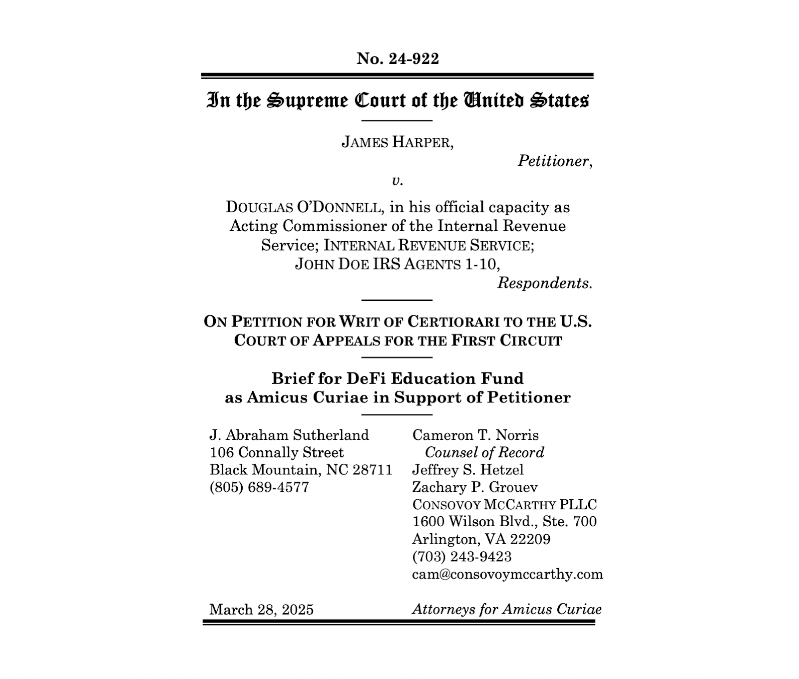 DeFi Education Fund filed an amicus brief in support of Harper’s petition, urging the Court to recognize that records reflecting blockchain-based financial activity exposes users to uniquely invasive forms of monitoring. We argued that the third-party doctrine cannot justify warrantless government access to identity and financial records, especially in this context. By declining to hear the case, the Court missed an opportunity to realign constitutional protection with current technology, and the reality that individuals must constantly engage with digital platforms to participate in society. Treating this necessary participation as consent to warrantless government surveillance ignores the realities of modern life. For more background on the case, read DEF’s blog post.